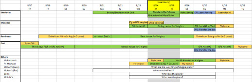 Daily Schedule for 13 days (Th 5/17 thru Tu 5/29)