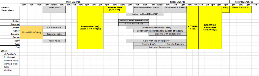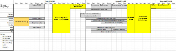 Hourly Schedule for 2 days (Th 5/24 and Sa 5/26)